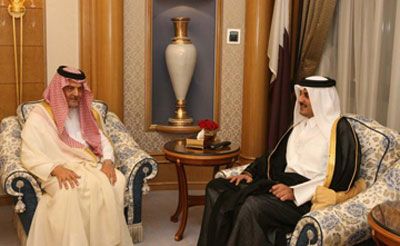 عقد وزير الخارجية السعودي الأمير سعود الفيصل اليوم الجمعة (27 أبريل / نيسان 2012) اجتماعا مع ولي العهد القطري الشيخ تميم بن حمد آل ثاني الذي يزور الرياض حاليا .