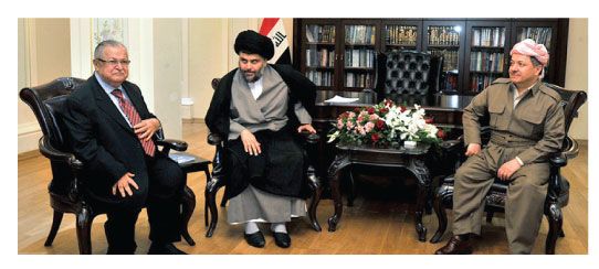 واجتمع الرئيس العراقي، جلال طالباني والزعيم السياسي مقتدى الصدر ورئيس إقليم كردستان العراق مسعود البارزاني ورئيس البرلمان أسامة النجيفي وزعيم قائمة «العراقية» إياد علاوي لمدة ثلاث ساعات ونصف الساعة. وانعقد اللقاء المفاجئ في مقر حزب الاتحاد الوطني الكردستاني في أربيل (320 كيلومتراً شمال بغداد).