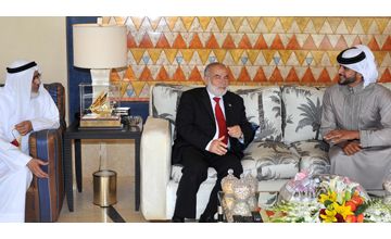 جاء ذلك خلال استقبال سموه اليوم رئيس المجلس التشريعي الفلسطيني بالإنابة أحمد محمد بحر والوفد المرافق بحضور خليفة بن أحمد الظهراني رئيس مجلس النواب ومصطفى السيد الأمين العام للمؤسسة الخيرية الملكية.