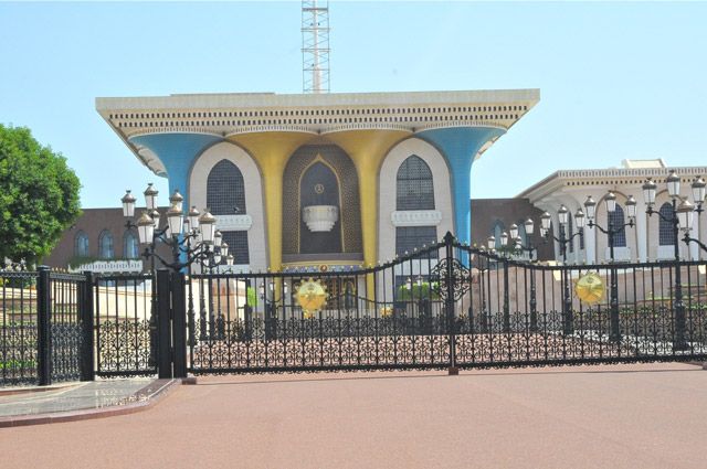 وأخيراً وصلنا إلى قصر العلم. لم يكن هناك حرسٌ ولا شرطةٌ ولا قواتٌ خاصة. كان الشارع سالكاً، لم يوقفنا أحدٌ أو يسأل عن هوياتنا. أخرجنا الكاميرا والتقطنا بعض الصور التذكارية أمام بوابة القصر. في هذا القصر تتم مراسم الاستقبال للوفود الرسمية، ويلتقي فيه السلطان أعضاء الحكومة في حفل سنوي بحسب مرافقنا العماني. وبالقرب منه يوجد مسجد قديم ومأتم يحمل اسم «المرحومة هشام بنت هاشم الموسوي».