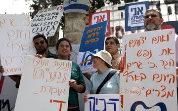 تظاهر العشرات من الإسرائيليين اليوم ، أمام منزل رئيس الحكومة الاسرائيلية بنيامين نتنياهو، في القدس المحتلة ضد العنصرية تجاه المهاجرين الأفارقة.
