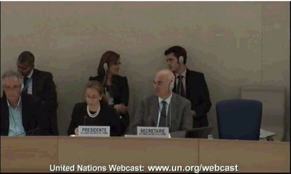 وطالب السفيرة لورا ديبوى الا تتكلم باسم مجلس حقوق الانسان ككل لان المجلس مكون من مجموعة من الدول الاعضاء، وطالبها ان كان لديها موقفا شخصيا من اى قضية فيجب التعبير عنه مع الالتزام الكامل بالاجراءات المعمول بها وخاصة الاجراءات المتعلقة بالاستعراض الشامل لتقارير الدول الاعضاء.