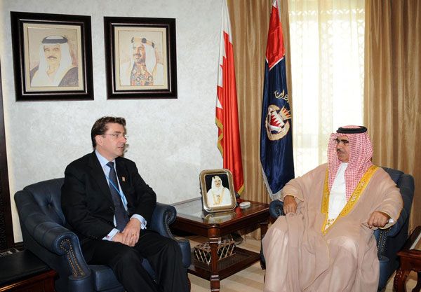 استقبل وزير الداخلية الفريق الركن الشيخ راشد بن عبدالله آل خليفة بمكتبه بديوان الوزارة، صباح اليوم الخميس (14 يونيو / حزيران 2012)، سفير المملكة المتحدة لدى مملكة البحرين إيان لنزي.