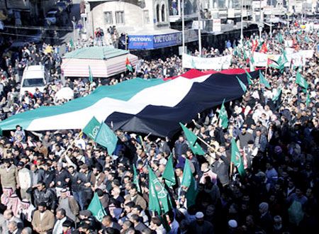 خرج مئات الاسلاميين والنشطاء المستقلين في مسيرة بشوارع العاصمة الأردنية عمان اليوم الجمعة (29 يونيو/حزيران 2012) للمطالبة بإلغاء قانون الانتخابات وتنحي الحكومة. ويعتقد كثيرون أن الاسلاميين بالأردن تشجعوا بفوز مرشح الاخوان المسلمين في انتخابات الرئاسة المصرية محمد مرسي. وطلب العاهل الأردني الملك عبد الله من البرلمان أمس الخميس عقد دورة استثنائية الشهر القادم لتعديل قانون الانتخابات المثير للجدل الذي أثار استياء الإسلاميين وزاد احتمال مقاطعتهم للانتخابات وهو ما قد يوجه ضربة للاصلاحات الديمقراطية. وعلى خلاف مطالب الانتفاضات التي اجتاحت العالم العربي ودعت الى خلع الحكام الذين ظلوا في السلطة لسنوات طويلة ركزت الاحتجاجات في الأردن على اجراء انتخابات حرة ومحاربة الفساد. لكن المحتجين في التجمع الحاشد اليوم الجمعة طالبوا باستقالة الحكومة.