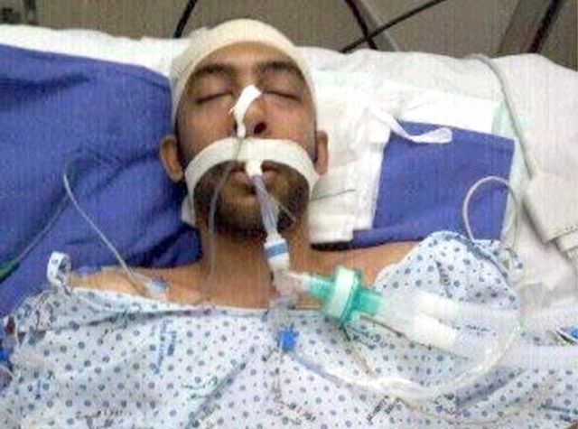 وأشار الموالي إلى أنه تم إجراء ما يقارب أربع عمليات إلى المصاب، عمليتان تم وصفهما بالبسيطتين، إلا أنه بعد العملية الرابعة كان الموالي يشكو من هبوط في الضغط وتباطؤ دقات القلب، مبيناً أنه بعد ذلك تمت إزالة قطعة من الجمجمة بعرض 5 إلى 6 سنتيمترات لتستقر حالته بعد ذلك، إذ كانت تلك القطعة هي السبب في انتكاس حالته الصحية.