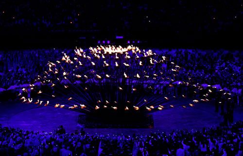 وتتشكل الشعلة من عناصر مقدمة من الوفود ال205 المشاركة في حفل الافتتاح، وقد اوقدها 7 من الشباب الواعدين في الرياضة البريطانية، ومن المفترض ان تزال مع نهاية الالعاب.