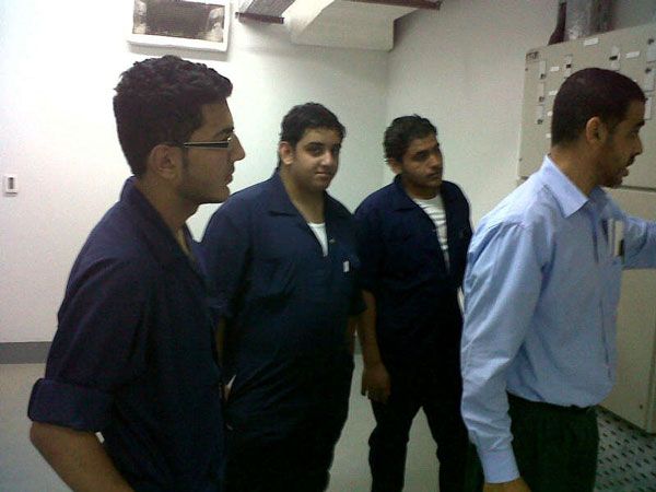 و قد تم تعريف الطلبة بعد تقسيمهم الى مجموعات حول كيفية عمل مختلف الأجهزة الهندسية في التبريد والتكييف والمضخات والأجهزة الكهربائية والميكانيكية والالكترونية والأجهزة الدقيقة بإشراف المهندسين والفنيين من إدارة الهندسة والصيانة.