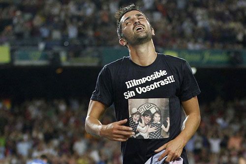 وشارك فيا الهداف التاريخي لمنتخب اسبانيا كبديل في مباراة برشلونة التي انتهت بفوزه على ريال سوسيداد 5-1 في افتتاح الدوري يوم الأحد الماضي وسجل هدفا قرب النهاية بعد غيابه لنحو ثمانية أشهر بسبب إصابته بكسر في الساق. وخلع فيا (30 عاما) قميصه احتفالا بالهدف ليكشف عن صورة لزوجته وابنتيه ومكتوب تحتها "مستحيل بدونكن" حيث تلقى بطاقة صفراء من حكم اللقاء.