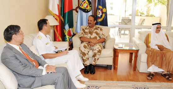 اجتمع القائد العام لقوة دفاع البحرين، المشير الركن الشيخ خليفة بن أحمد آل خليفة، في مكتبه بالقيادة العامة صباح اليوم الاثنين (17 سبتمبر/ 2012م مع العميد البحري "سينيتشي توكومارو" قائد قوة مكافحة الألغام البحرية الياباني والوفد المرافق بمناسبة زيارته للبلاد.