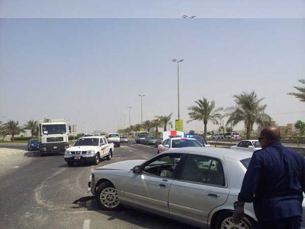 تعرض شخصان يوم أمس الجمعة (21سبتمبر/ أيلول2012) لإصابات متفرقة بعد أن تدهورت السيارة التي يقودها أحدهما على شارع الشيخ خليفة بن سلمان، وأدى ذلك إلى عرقلة حركة السير قبل أن يتمكن أفراد شرطة المرور من إزاحة السيارة من وسط الشارع باستخدام الرافعة، وبدأت الإدارة العامة للمرور تحقيقاً في ظروف وملابسات وقوع الحادث الذي خلف أضراراً متفرقة بالسيارة.