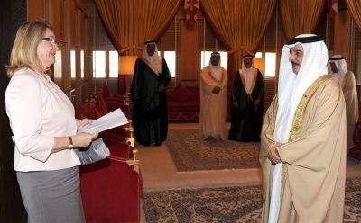 تسلم عاهل البلاد حضرة صاحب الجلالة الملك حمد بن عيسى آل خليفة في احتفال جرى بقصر الصخير، أمس الثلثاء (25 سبتمبر/ أيلول 2012)، أوراق اعتماد خمسة سفراء جدد لدى مملكة البحرين.