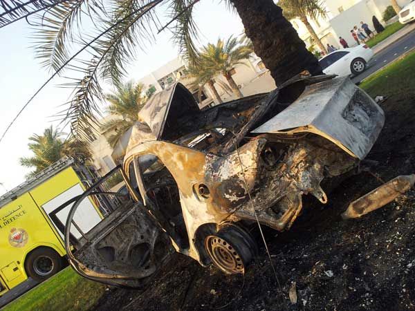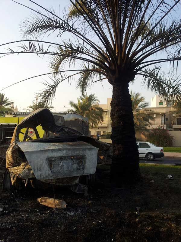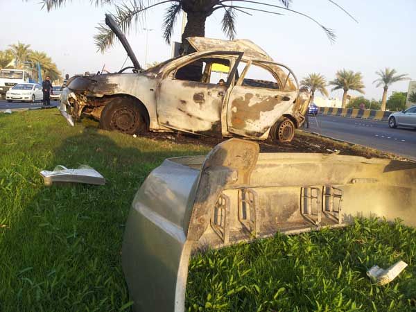 وجاء في التفاصيل أن شابّاً بحرينياًّ يقود سيارته وبرفقته شاب آخر؛ ففقد السيطرة على قيادتها ما أدى إلى انحرافها وصعودها فوق الرصيف وارتطامها بنخلة ما أسفر ذلك عن اندلاع حريق فيها وأدى إلى إصابة الشابين بإصابات بليغة أدت إلى وفاة أحدهما في موقع الحادث، فيما نقل الشاب الآخر بواسطة الاسعاف إلى المستشفى لتلقي العلاج .فيما فارق الحياة في وقت لاحق.
