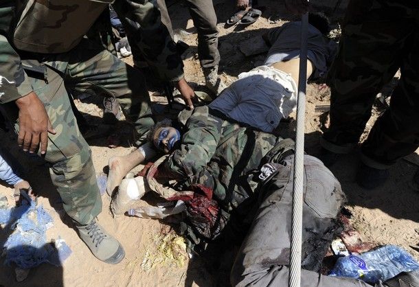 وقال بيتر بوكيرت مدير الطواريء في هيومن رايتس ووتش في بيان "تشير الأدلة إلى أن ميليشيات المعارضة أعدمت خارج نطاق القضاء 66 على الأقل من أفراد موكب القذافي المعتقلين في سرت." وأضاف "يبدو أيضا أنها أخذت المعتصم القذافي الذي كان مصابا إلى مصراتة وقتلته هناك.