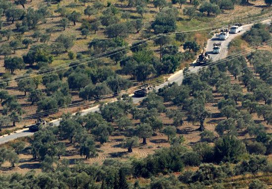 قال مكتب محافظ اقليم هاتاي التركي إن القوات المسلحة التركية أطلقت النار عبر الحدود مع سوريا اليوم الأربعاء (17 أكتوبر/ تشرين الأول 2012) ردا على سقوط قذيفة مورتر أطلقت من الجانب السوري داخل الاقليم الحدودي.