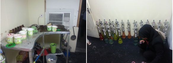 وأضافت الوزارة بأن المفتشين الصحيين الحاصلين على صفة مأموري الضبط القضائي بقرار رقم (14) لسنة 2010 صادر عن وزير العدل والشئون الاسلامية، قد قاموا بفتح محاضر ضبط قضائية بعد تحققهم من صحة الشكاوي الواردة وقاموا بتثبيت المخالفات فيها وتبين أن البعض منهم غير ملتزم أساساً بالاشتراطات الصحية الخاصة بمحلات تحضير وتقديم الشيشة الواردة في قرار القائم بأعمال وزير الصحة رقم 2 لسنة 2011، وقد استمع المفتشين الصحيين إلى أقوال المسئولين عن تلك المقاهي حيث أقروا بارتكابهم هذه المخالفات!!