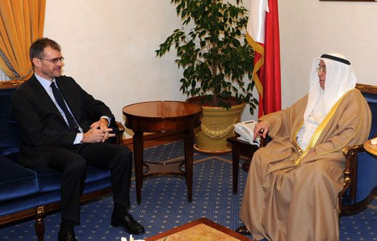 استقبل نائب رئيس مجلس الوزراء سمو الشيخ محمد بن مبارك آل خليفة في مكتبه بقصر القضيبية اليوم الثلثاء (13 نوفمبر/ تشرين الثاني 2012) سفير الجمهورية الفرنسية لدى مملكة البحرين كريستيان تيستوت بمناسبة تعينه سفيرا لبلاده لدى مملكة البحرين .