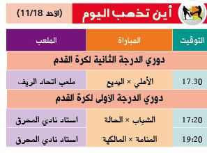 يضع الوسط الرياضي أمامكم برنامج اليوم الرياضي سواءً فيما يتعلق بالشأن العالمي أو المحلي.مشاهدة ممتعة نتمناها لكم أعزائي القراء.