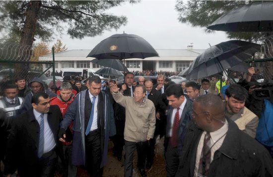 إلى ذلك، قال الأمين العام للأمم المتحدة بان كي مون إنه ليس لديه علم بأي تقارير مؤكدة تفيد بأن الرئيس السوري بشار الأسد يعد لاستخدام أسلحة كيماوية لكنه اذا أقدم على هذا فستكون «جريمة شائنة».