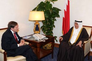 استقبل وزير العدل والشئون الاسلامية والاوقاف الشيخ خالد بن علي آل خليفة بمكتبه اليوم الاحد (9 ديسمبر / كانون الأول 2012)، مساعد وزيرة الخارجية الأمريكية لشؤون الديمقراطية وحقوق الإنسان والعمل مايكل بوزنر.