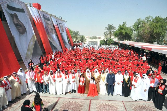 دشنت بلدية الجنوبية بمناسبة العيد الوطني المجيد لمملكة البحرين، والذكرى الثالثة عشرة لتولي جلالة الملك مقاليد الحكم، اكبر علم بشري في مملكة البحرين بالتعاون مع طلبة مدارس المنطقة الجنوبية بحضور وزير شئون البلديات والتخطيط العمراني جمعة الكعبي.
