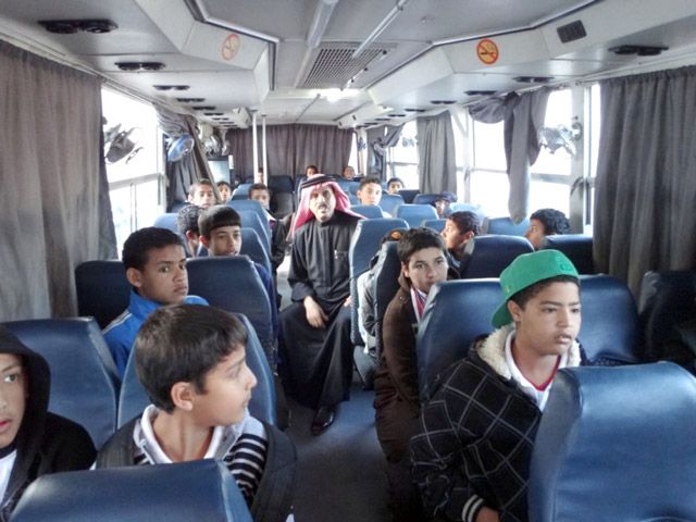 الصورة مأخوذة بباص سفر ! باصات المدرسة ممزقة ومهترئة .. بالمناسبة سعادة الوزير ألم يصلك موضوع اعتقال باص مدرسة يوم أمس ؟!