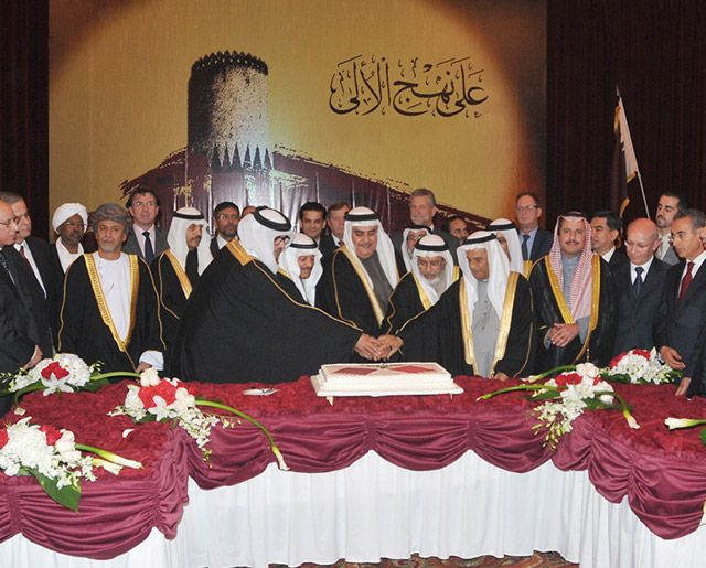 حضر مستشار رئيس الوزراء سمو الشيخ سلمان بن خليفة آل خليفة، ووزير الخارجية الشيخ خالد بن أحمد بن محمد آل خليفة، حفل الاستقبال الذي نظمته سفارة دولة قطر لدى مملكة البحرين مساء أمس (الثلثاء) بفندق الخليج الدولي بمناسبة اليوم الوطني لدولة قطر الشقيقة، وذلك بتكليف من رئيس الوزراء صاحب السمو الملكي الأمير خليفة بن سلمان آل خليفة.