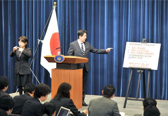 وقال رئيس الوزراء، الذي تولى مهامه في 26 ديسمبر/ كانون الأول بعد أن حقق حزبه الحزب الليبرالي الديموقراطي فوزاً ساحقاً في الانتخابات التشريعية المبكرة: «من الأهمية بمكان وضع حد للانكماش الاقتصادي المزمن، وارتفاع سعر الين».
