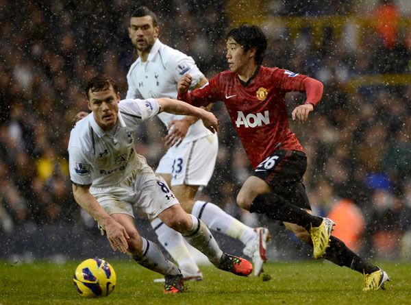 أهدر فريق مانشستر يونايتد فوزا في متناول الأيدي واكتفى بالتعادل مع مضيفه توتنهام بهدف لمثله اليوم الأحد (20 يناير / كانون الثاني 2013) في المرحلة الثالثة والعشرين من الدوري الإنجليزي الممتاز .