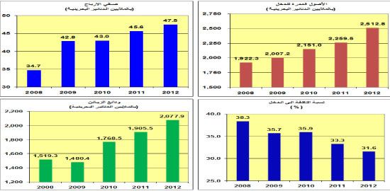 وقد بلغ إجمالي الميزانية العمومية للبنك مبلغ 2654.56 مليون دينار (7060.00 مليون دولار) بتاريخ 31 ديسمبر/كانون الأول 2012 مقارنة بمبلغ 2388.65 مليون دينار (6352.79 مليون دولار) وذلك في نهاية العام الماضي. وأظهرت ودائع الزبائن التي بلغت 2077.90 مليون دينار (5526.34 مليون دولار) نمواً بلغت نسبته 9.0 في المئة وهو ما عكس نجاح مبادراتنا في مجال استقطاب الودائع. وقد بلغ مجموع الأصول المدرة للدخل 2512.78 مليون دينار (6682.93 مليون دولار) مقارنة بمبلغ 2259.50 مليون دينار) 6009.32 ملايين دولار) عن العام المنصرم، والذي عكس نمو بنسبة 11.2 في المئة.