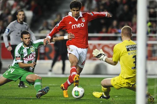 ورفع بنفيكا رصيده الى 45 نقطة بفارق الاهداف خلف غريمه التقليدي بورتو الذي كان سحق مضيفه غيمارايش 4-صفر السبت.
