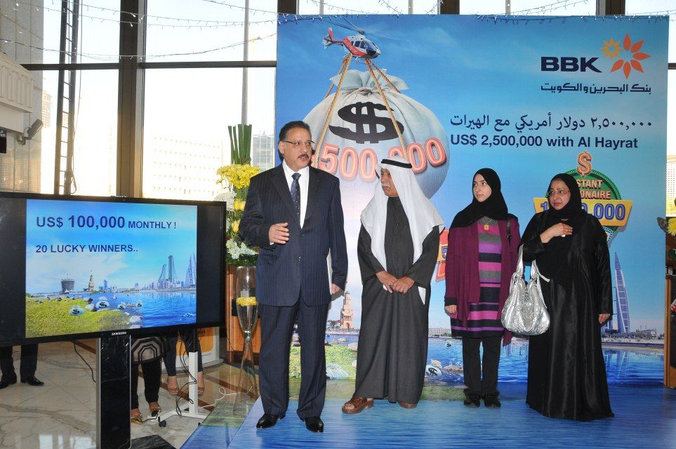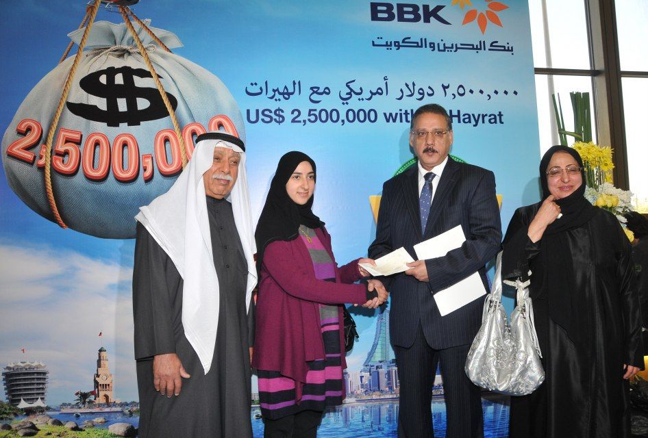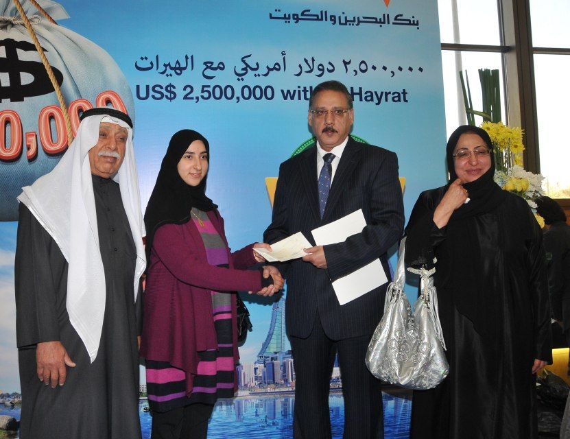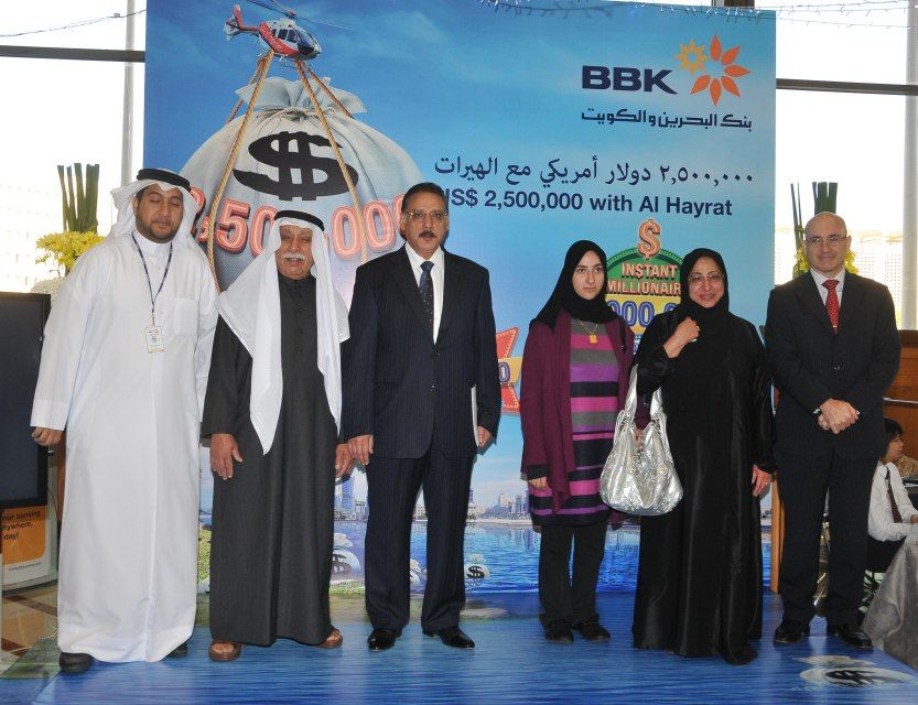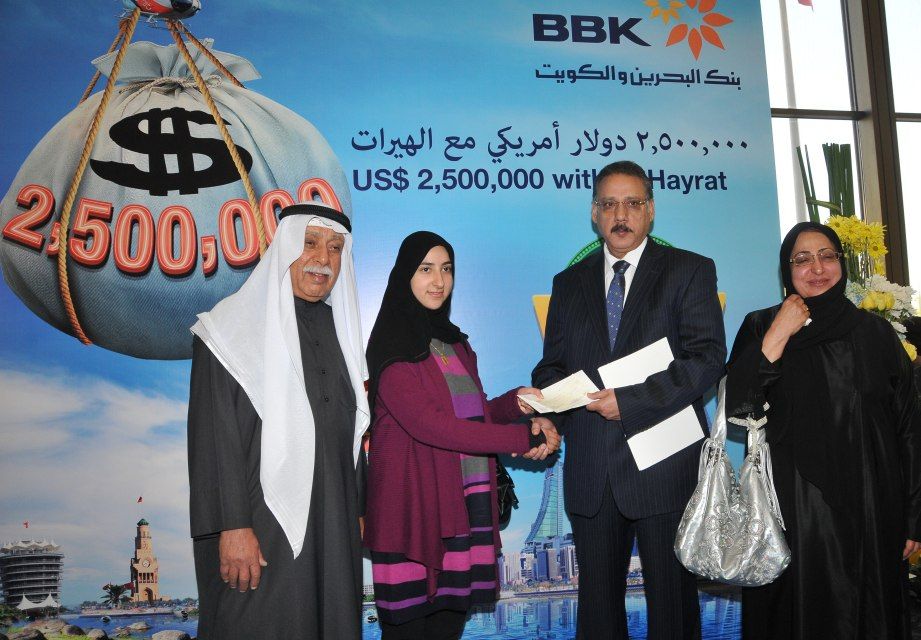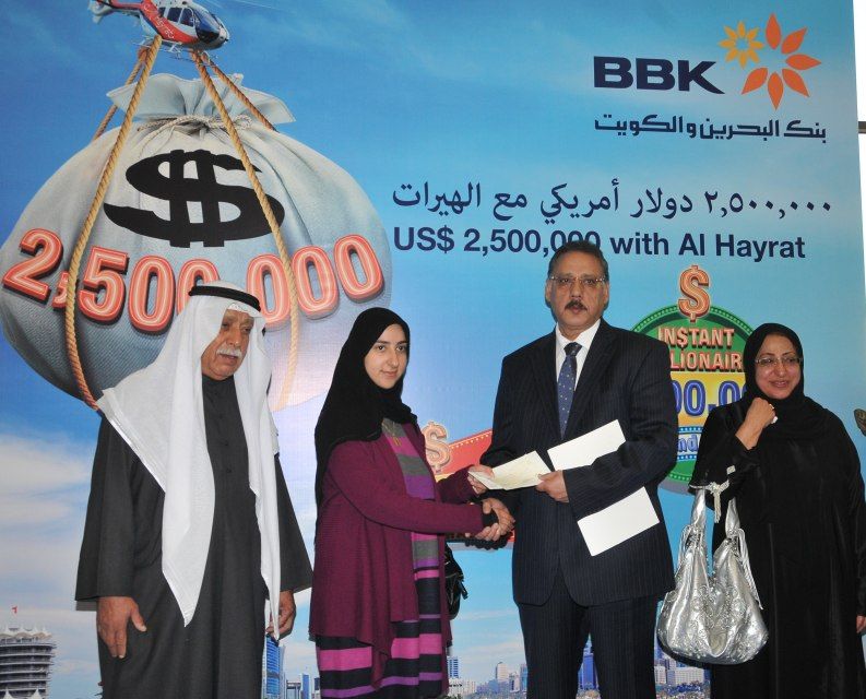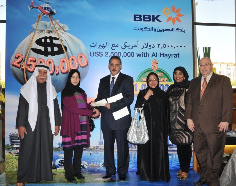 أعلن بنك البحرين والكويت، البنك الرائد في مجال الخدمات المصرفية التجارية وخدمات الأفراد في البحرين عن اسم الفائزة بالسحب على الجائزة الكبرى لحساب الهيرات، وهو حساب ادخار فريد من نوعه يقدم فرصاً مثيرة لزبائنه للفوز بجوائز قيمة مع تشجيعهم في الوقت ذاته على الادخار. ولقد حصلت الفائزة على جائزة نقدية تبلغ قيمتها 500 ألف دولار أميركي في السحب على جائزة حساب الهيرات الكبرى للعام 2012 الذي أجري في يوم 23 يناير/ كانون الثاني 2013 تحت إشراف ممثل وزارة الصناعة والتجارة، ياسر بوعلاي، إضافة إلى عدد من المسئولين في البنك.