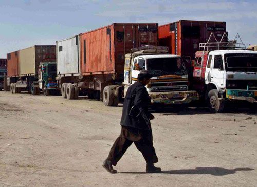 وقال "الحاويات تحمل معدات عسكرية. هذه اول مرة يخرج فيها هذا العدد الكبير من الشاحنات من كراتشي حاملة معدات لحلف الاطلسي".