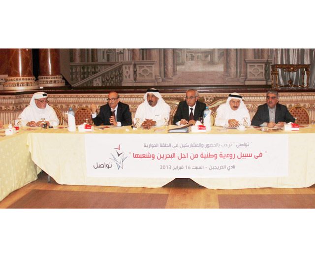 شدد مشاركون في الحلقة الحوارية التي نظمتها مجموعة «تواصل» بعنوان: «في سبيل رؤية وطنية من أجل البحرين» والتي نظمت أمس السبت (16 فبراير/ شباط 2013) بنادي الخريجين بالعدلية على الحاجة إلى حل سياسي للأزمة البحرينية، وذلك بغية القضاء على الحس الطائفي، والحفاظ على الوضع الاقتصادي للبحرين الذي تضرر جراء الأحداث.