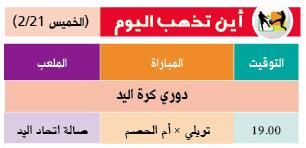 يضع الوسط الرياضي أمامكم أعزائنا القراء برنامج اليوم الرياضي المتعلق بالرياضة المحلية.