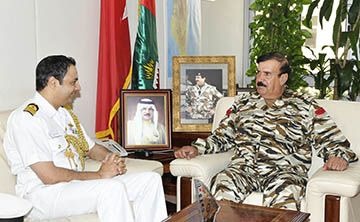 اجتمع رئيس هيئة الأركان اللواء الركن الشيخ دعيج بن سلمان آل خليفة في مكتبه بالقيادة العامة اليوم مع الملحق العسكري الهندي المعتمد لدى مملكة البحرين والمقيم في مسقط العقيد الركن بحري أرجون ديف ناير.