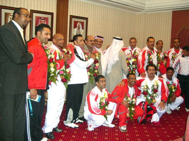 وكان في استقبال الأبطال مدير الشئون المالية والموارد البشرية بالمؤسسة العامة للشباب والرياضة الشيخ محمد بن حمد آل خليفة وجمهور غفير من المهنئين والأهل الذين كان استقبالهم رائعاً ومحفوفاً بالورد وسط أهازيج وصرخات الفرح التي عمت صالة الوصول في مطار البحرين الدولي.