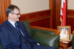 استقبـل الأميـن العـام لمجلس التعليـم العالـي ريـاض يوسـف حمـزة في مكتبه بـوزارة التربية والتعليم بمدينة عيسى كلاً من رئيـس الكليـة الملكية للجراحين في أيرلندا باتـرك بـرو، وهنـاه مجـي عميد كليـة الطـب والعلـوم الطبيـة وبرفقتهما نائـب رئيـس جامعـة البحريـن الطبيـة سميـر العتـوم.