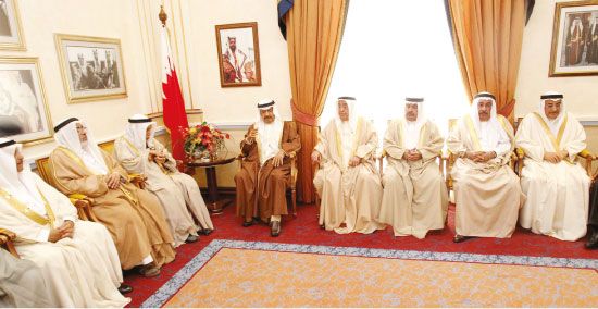 وكان سمو رئيس الوزراء استقبل في قصر القضيبية صباح أمس الأحد (24 مارس/ اذار 2013) عددا من كبار المسئولين يتقدمهم رئيس المجلس الأعلى للشئون الإسلامية سمو الشيخ عبدالله بن خالد آل خليفة، ورئيس مجلس النواب خليفة الظهراني، ورئيس مجلس الشورى علي الصالح وعدد من النواب والوزراء.