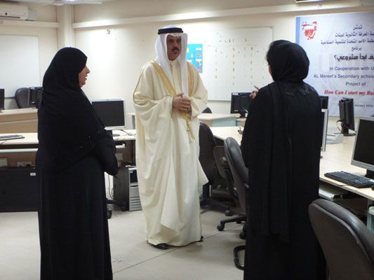 وأطلع وزير التربية والتعليم خلال الزيارة الميدانية على الأنشطة العملية التي تنفذها المدرسة وخصوصاً على المشروع ريادة الأعمال المشترك الذي تنفذه بالتعاون مع برنامج منظمة الأمم المتحدة للتنمية الصناعية (اليونيدو) والذي طبقته المدرسة بصورة تجريبية العام الدراسي الماضي ويشهد العام الدراسي الحالي تطبيقه في مدرسة المعرفة الثانوية للبنات أربع مدارس من مدارس النظام المطور للتعليم الفني والمهني حيث يلتحق به طلبة مقرر المشاريع الصغيرة باللغة الإنجليزية ويشتمل على شقيّن نظري وتطبيقي وتشترك في تنفيذه أيضاً عدة جهات هي بنك البحرين للتنمية، صندوق العمل (تمكين)، وزارة الصناعة والتجارة، بنك الإبداع.