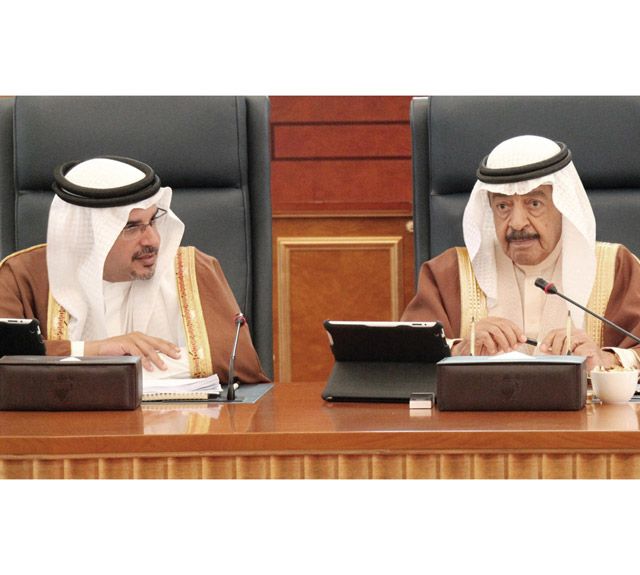 جاء ذلك لدى ترؤس رئيس الوزراء صاحب السمو الملكي الأمير خليفة بن سلمان آل، بحضور ولي العهد نائب القائد الأعلى النائب الأول لرئيس مجلس الوزراء صاحب السمو الملكي الأمير سلمان بن حمد آل خليفة الاجتماع الاعتيادي الأسبوعي لمجلس الوزراء وذلك بقصر القضيبية صباح أمس الأحد (14 أبريل/ نيسان 2013).