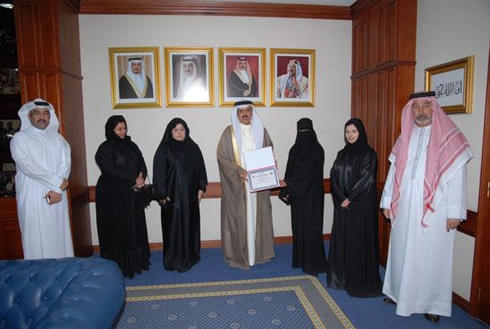 استقبل وزير التربية والتعليم ماجد بن علي النعيمي بمكتبه بديوان الوزارة بمدينة عيسى وفد مدرسة أم أيمن الابتدائية للبنات، وذلك بمناسبة فوز المدرسة بالمركز الأول في مسابقة "أفضل الممارسات المدرسية للتعلم الإلكتروني" على مستوى الوطن العربي، التي عقدت ضمن فعاليات المؤتمر الإقليمي الثاني للتعلم الإلكتروني المنعقد في دولة الكويت الشقيقة، حيث شاركت المدرسة وبإشراف من إدارة مشروع جلالة الملك حمد لمدارس المستقبل في هذه المسابقة من خلال مشروع (مشاركة أولياء الأمور) "Parents Sharing"، الذي يقوم على فكرة تعميق التواصل بين المدرسة والمنزل وإطلاع ولي الأمر على العملية التعليمية القائمة داخل البيئة المدرسة ومشاركته فيها، من خلال تفاعل الطالبات وأولياء الامور مع السبورة الإلكترونية بصفوف الحلقة الأولى وفي مراكز تقنية المعلومات والاتصال وأثناء نقل حصص إلكترونية باستخدام خدمة (Video Conference) بين مختبر العلوم وأحد مراكز تقنية المعلومات والاتصال وتفعيل مختبرات الحاسوب لمادة الرياضيات.