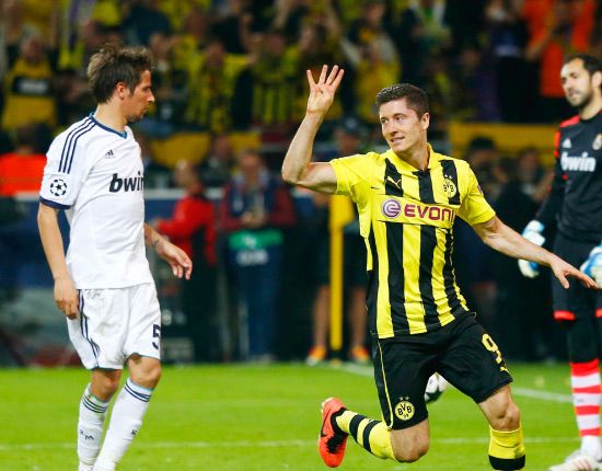 ويدين دورتموند بقطعه أكثر من نصف الطريق نحو نهائي «ويمبلي» في 25 مايو/أيار المقبل، إلى البولندي روبرت ليفاندوفسكي الذي منح الفريق الألماني فوزه السادس من أصل 6 مباريات خاضها في المسابقة على أرضه هذا الموسم بتسجيله الأهداف الأربعة (8 و50 و55 و67 من ركلة جزاء)، فيما كان هدف ريال الوحيد من نصيب نجمه البرتغالي كريستيانو رونالدو (43).