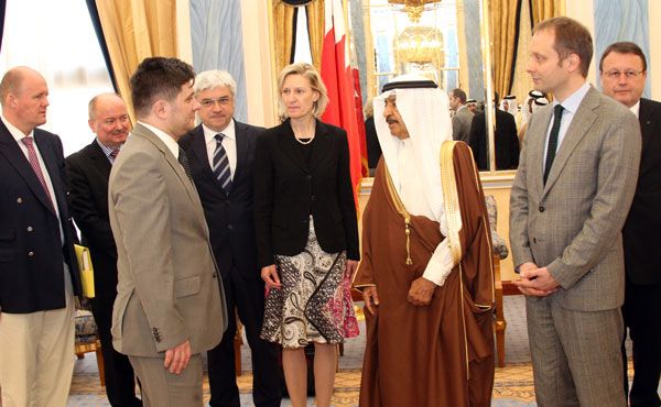 وكان سمو رئيس الوزراء قد استقبل بقصر القضيبية صباح اليوم الاثنين (29 أبريل / نيسان 2013) وفد من البرلمان الأوربي تتقدمهم انجيليكا نيبلير، وبحضور رئيس مجلس النواب خليفة أحمد الظهراني.