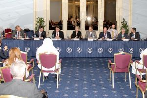 وشارك في الاجتماع رئيس وزراء ووزير خارجية دولة قطر ووزراء خارجية دولة فلسطين والمملكة الأردنية الهاشمية وجمهورية مصر العربية والأمين العام للجامعة العربية وسفيرا المملكة العربية السعودية وجمهورية لبنان لدى واشنطن.