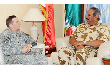 اجتمع القائد العام لقوة دفاع البحرين المشير الركن الشيخ خليفة بن أحمد آل خليفة في مكتبه بالقيادة العامة صباح اليوم الخميس (2 مايو/ أيار 2013) مع الفريق بيتر فانجيل المفتش العام للقوات البرية بالجيش الأمريكي والوفد المرافق له بمناسبة زيارته للمملكة .