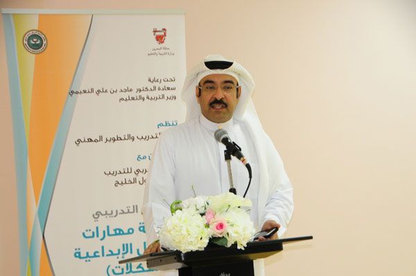 افتتح وكيل وزارة التربية والتعليم للموارد والخدمات الشيخ هشام بن عبدالعزيز آل خليفة البرنامج التدريبي الذي حمل عنوان (تنمية مهارات الحلول الإبداعية للمشكلات)، والذي نظمته إدارة التدريب والتطوير المهني بالتعاون مع المركز العربي للتدريب التربوي لدول الخليج، وحاضرت فيه سلوى الشرقاوي الرئيس التنفيذي لشركة لينكج ميدل إيست من دولة الكويت الشقيقة، لفائدة (25) اختصاصياً من مختلف إدارات وزارة التربية والتعليم, وذلك بالمركز الإقليمي لتكنولوجيا المعلومات والاتصال.