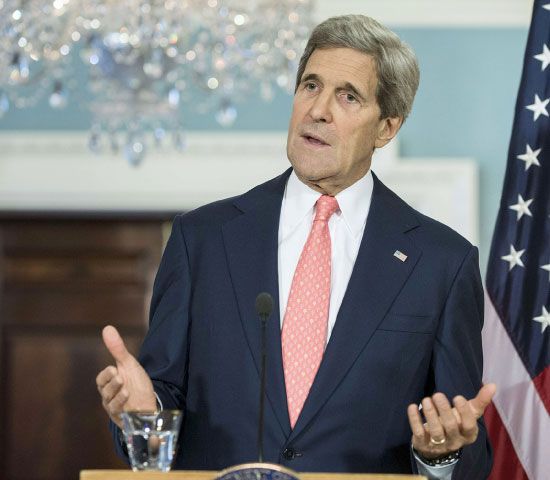 أعلن وزير الخارجية الأميركي، جون كيري، أن استمرار روسيا ببيع الأسلحة إلى حكومة الرئيس السوري، بشار الأسد، يثير تساؤلات بشأن صدق التزامها بالتوصل إلى حل سياسي للأزمة السورية، مشيراً إلى أن هذه الأفعال تؤثّر سلباً على استقرار المنطقة، وتهدد أمن إسرائيل.