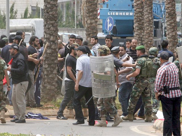 ويُعد الحادث الأخطر من نوعه الذي يقع في بيروت بين مؤيدين للنظام السوري ومعارضين له، ويأتي بعد يومين من تحذير الجيش اللبناني من «مخططات» لاستدراج البلاد إلى حرب «عبثية» على خلفية النزاع السوري. ووقع إشكال أمني أمس لدى محاولة عدد من الشبان تنظيم اعتصام قرب السفارة رفضاً لمشاركة حزب الله في المعارك إلى جانب القوات النظامية السورية، وقيام شبان مناصرين للحزب بالاعتداء عليهم لمنعهم من ذلك، بحسب ما أفاد مصور في وكالة «فرانس برس».