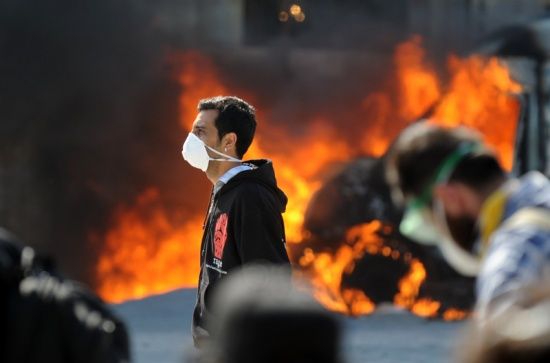 وطوال النهار وقعت صدامات بين الشرطة ومجموعات الشبان المتظاهرين المقنعين والمسلحين بالحجارة وقنابل المولوتوف.