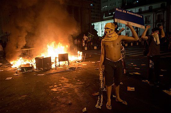 وهي أضخم تظاهرات منذ التحركات الاحتجاجية التي جرت العام 1992 ضد حكومة الرئيس السابق فرناندو كولور دي ميلو الذي استقال أثناء محاكمته السياسية أمام مجلس الشيوخ. وجرت أضخم تظاهرة في ريو دي جانيرو وشارك فيها مئة ألف شخص وقد انطلقت بشكل سلمي احتجاجاً على زيادة اسعار النقل العام والنفقات الطائلة التي تجري تحضيراً لكأس العالم لكرة القدم العام 2014، قبل أن تتخذ طابعاً عنيفاً عند الليل.